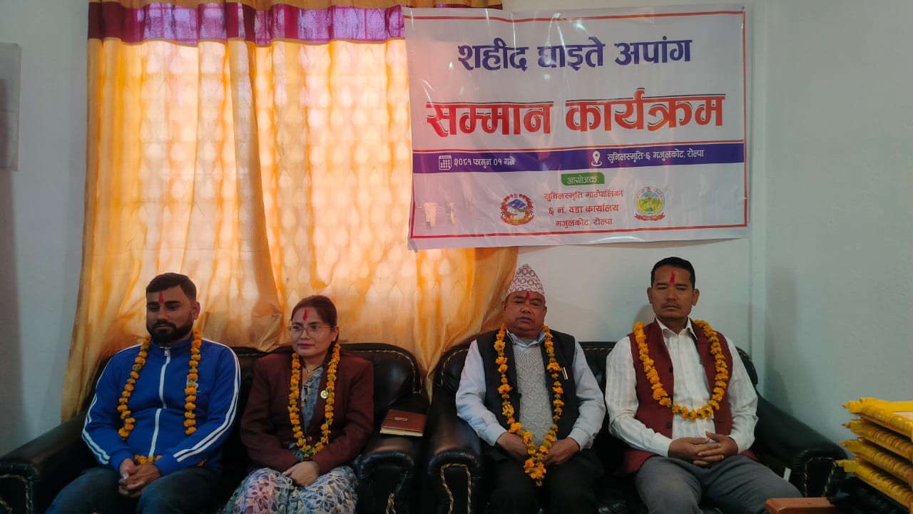 डि.एस. संघर्ष / रोल्पा— सुनिलस्मृति गाउँपालिकाको वडा नम्बर ५ र ६ मा विभिन्न कार्यक्रम गरी ३०औं जनयुद्ध दिवस भव्य रूपमा सम्पन्न भएको छ। कार्यक्रमका प्रमुख अतिथि सुनिलस्मृति गाउँपालिकाका अध्यक्ष मणिराम बुढाथोकी तथा विशिष्ट अतिथि गाउँपालिका उपाध्यक्ष मिना थापा र प्रमुख प्रशासकीय अधिकृत नगेन्द्रप्रसाद रिजाल रहनुभएको थियो । साथै, नेकपा (माओवादी केन्द्र) सुनिलस्मृति गाउँपालिका पार्टी अध्यक्ष रत्नबहादुर महरा, नेपाली कांग्रेसका प्रतिनिधि हिराबहादुर थापा, राष्ट्रिय स्वतन्त्र पार्टीका प्रतिनिधि लगायत विभिन्न राजनीतिक दलका नेताहरूको उल्लेखनीय उपस्थिति रहेको थियो।